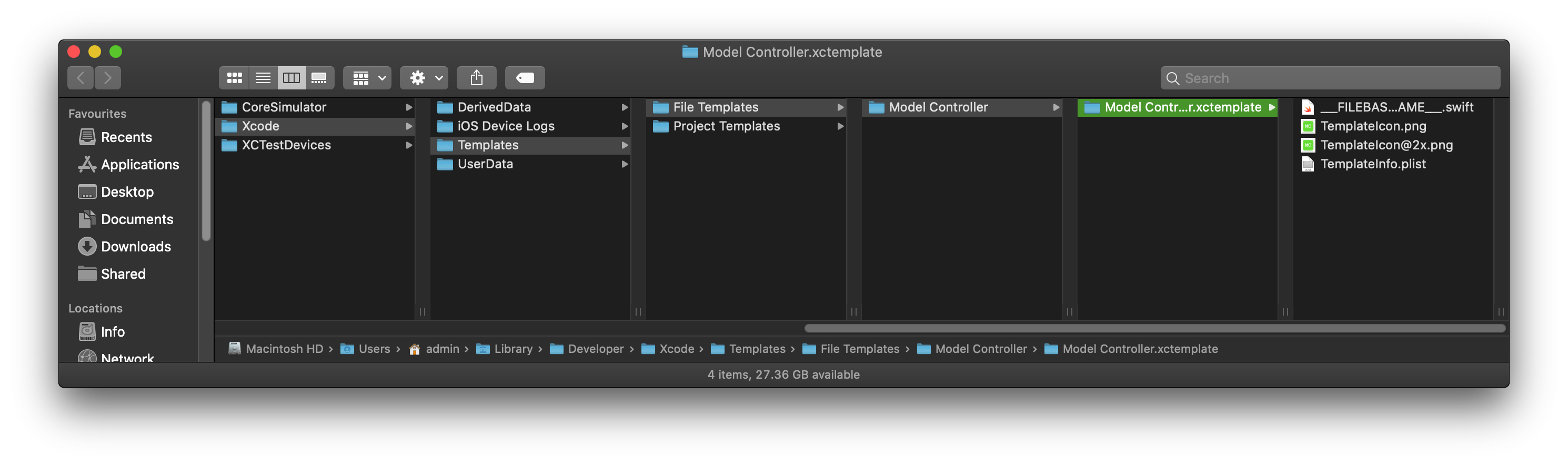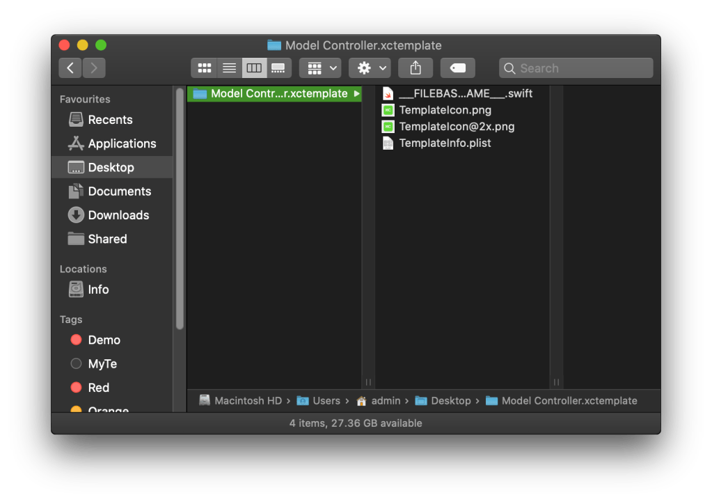 - Rename the template folder to Model Controller.xctemplate. Once done your folder should look like: