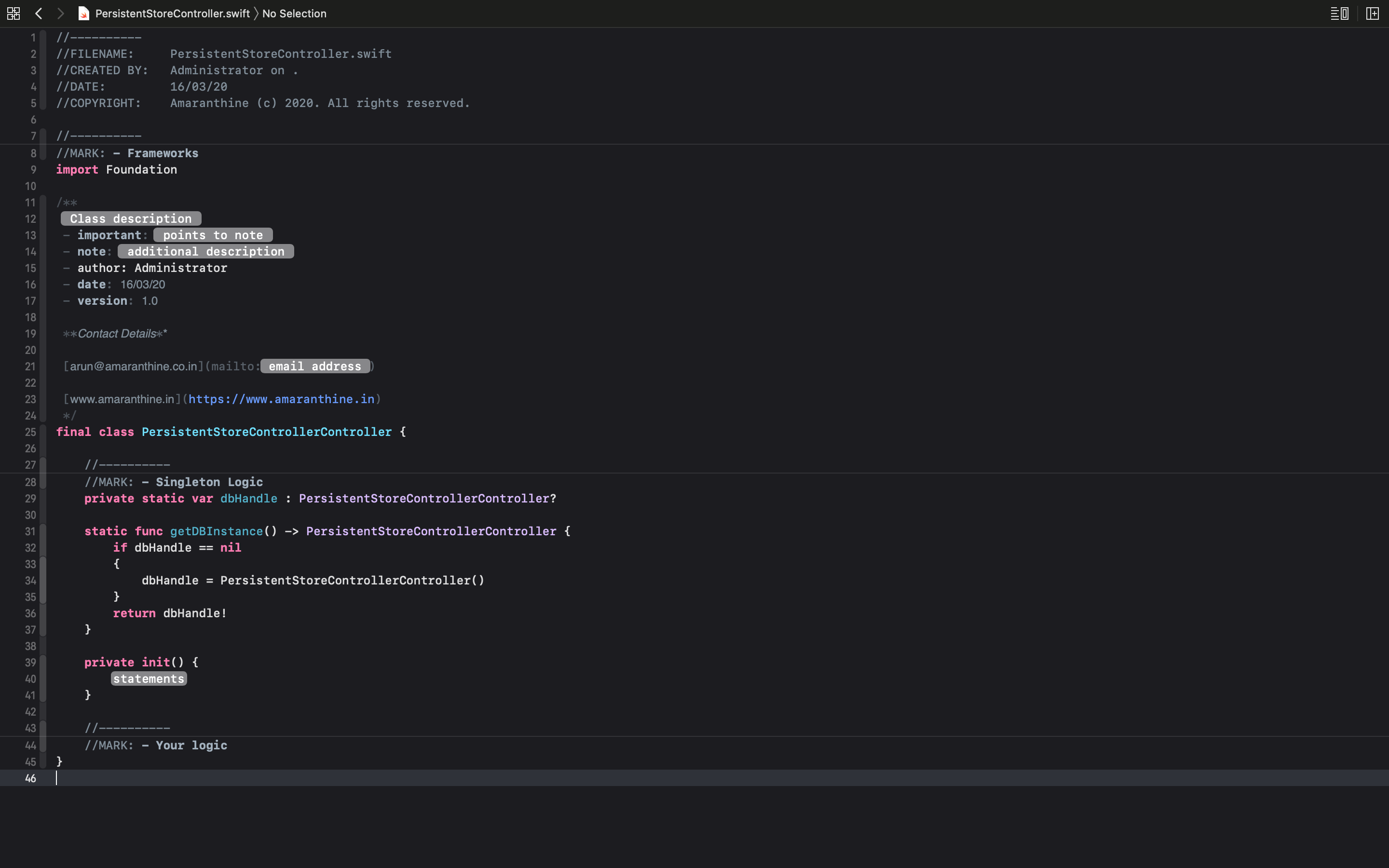 Note: The syntax <# … #> automatically gets converted to placeholders when the file is opened in Xcode.