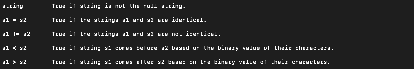 We can find all these checks in the man page for the test command.
