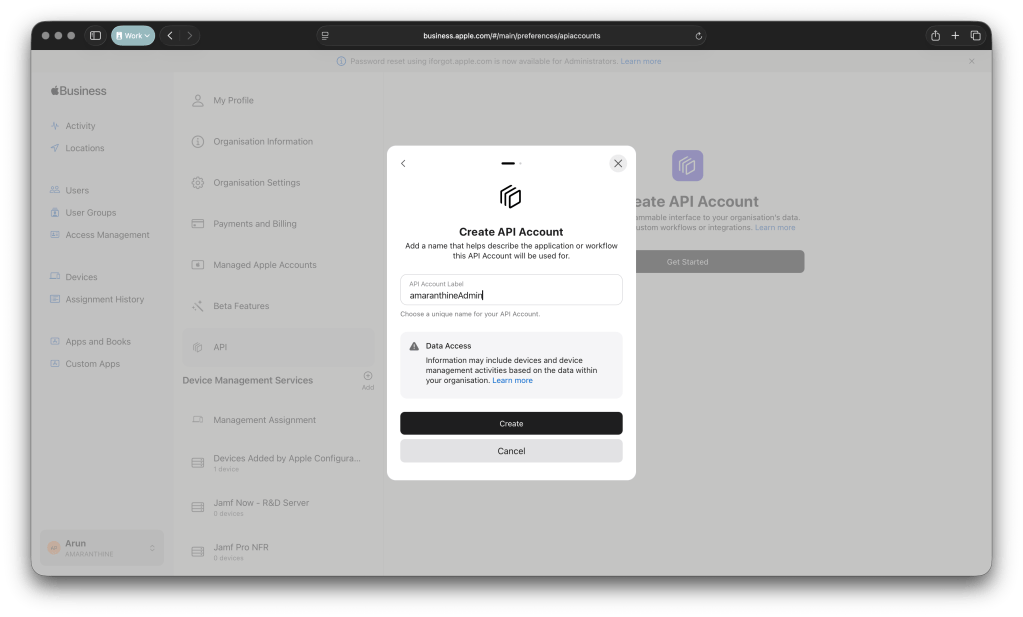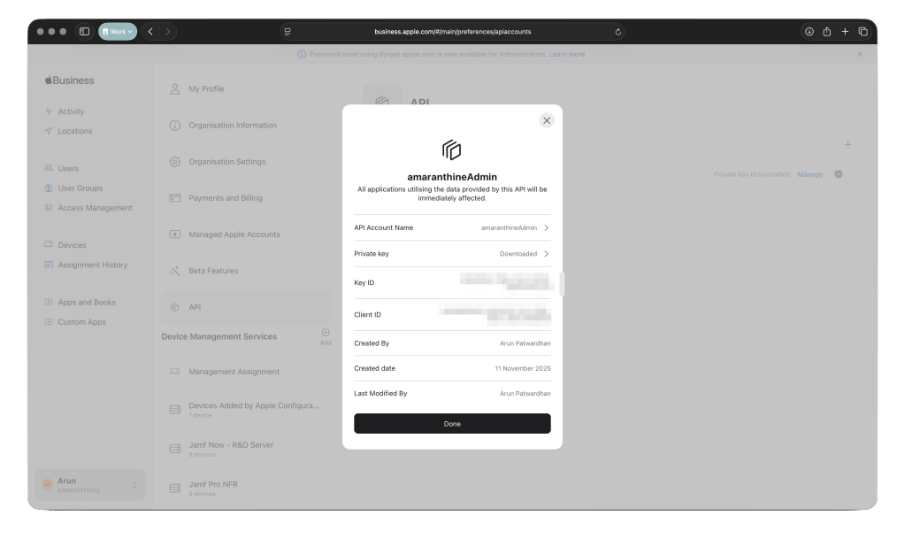 The API account is created on Apple Business Manager/Apple School Manager portal.