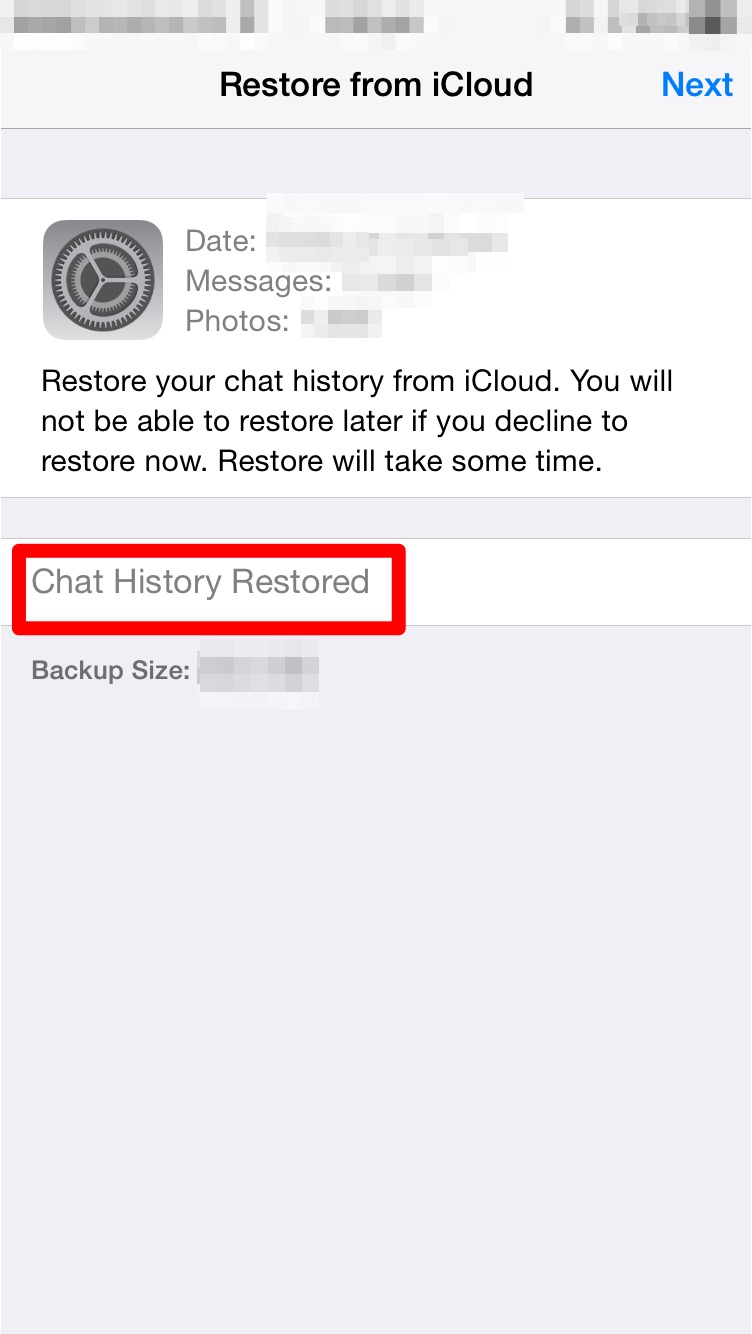 5. You will be asked whether you want to restore your previous chats from iCloud.IMG_0067
